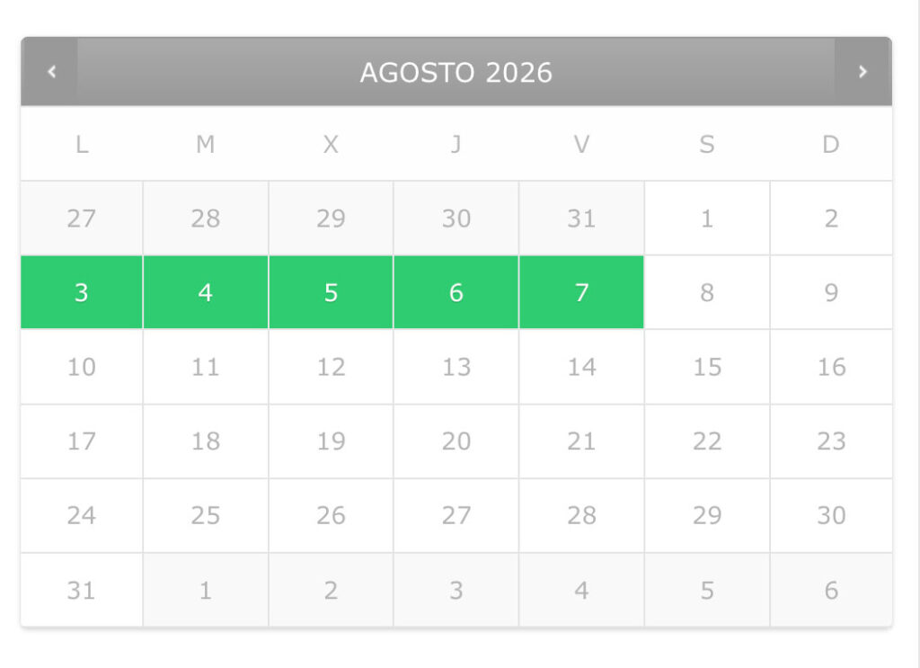 5 dies: de dilluns a divendres. De 10.00h a 12.00h